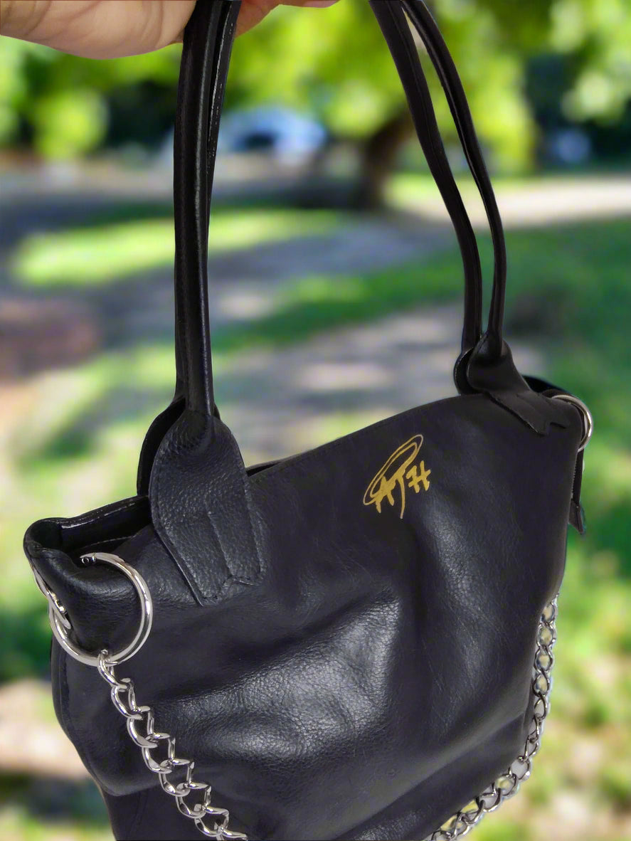 Introducing The Charlotte Tote, a stunning handcrafted leather bag that is perfect for the woman-on-the-go. Expertly handmade and hand-stitched using only the finest full-grain black leather, this tote is both spacious and stylish. With plenty of room to carry all your essentials, you can easily stay organized while on the move. Additionally, the Moni belt bag can attach to the interior of the bag, providing even more storage options. Designed by Arleen, The Charlotte Tote is a must-have accessory for any fashion-forward woman.